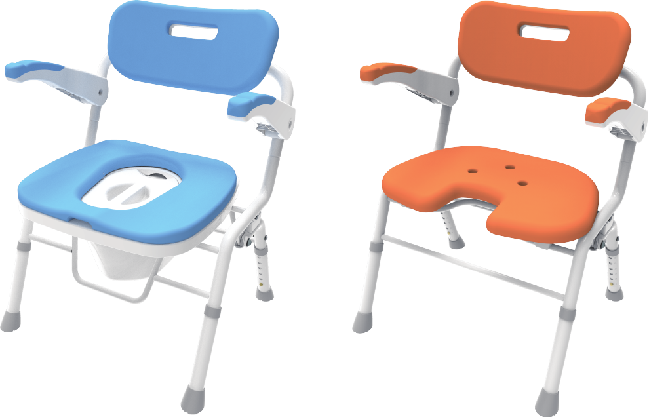 排泄時と入浴時のどちらにも対応できる、折りたたみ式の多機能チェア。