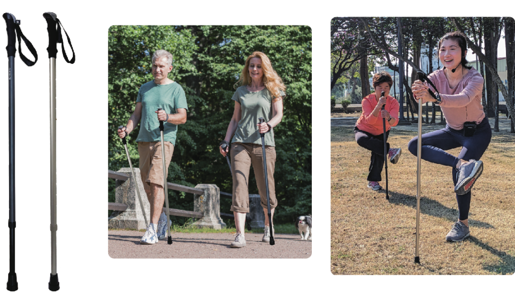 ノルディックウォーク、ハイキング、ストレッチなど、幅広い用途に対応するモデルです。